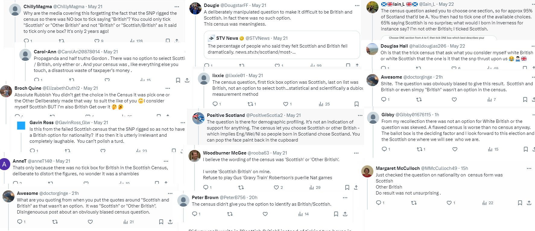 According to lots of angry people on Twitter, the question was rigged because it only gave the options of “Scottish” or “other British” and you must select only one.