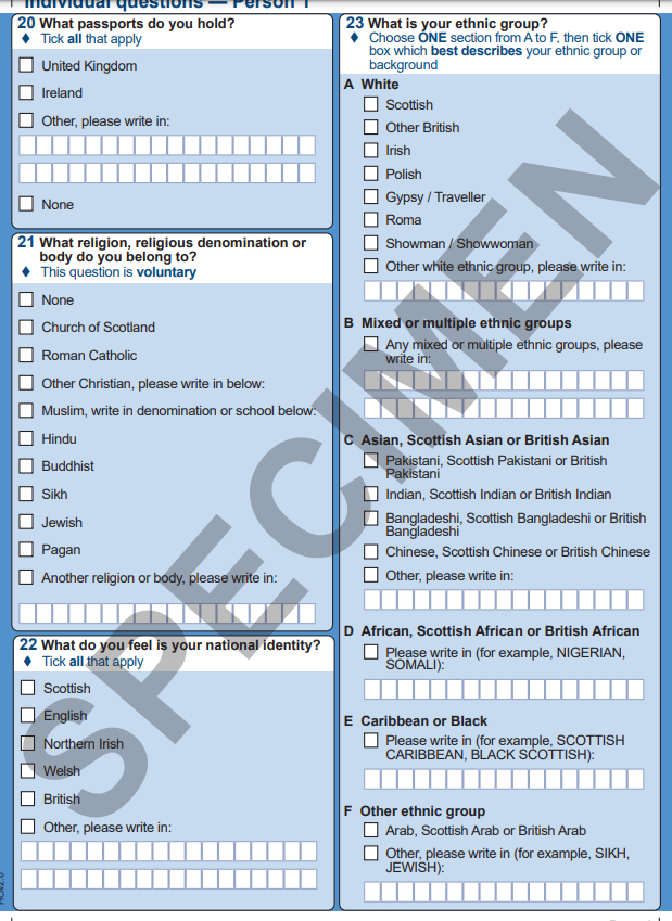 The 2022 ethnic group question was also almost identical to the 2011 ethnic group question. “National identity” and “ethnic group” are two different and separate concepts, and treated as such in the census. There is however a particular political group that likes to combine the two concepts, and they don’t seem to like being called up on it.