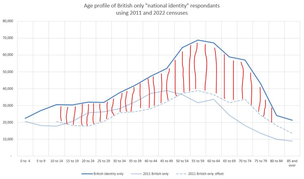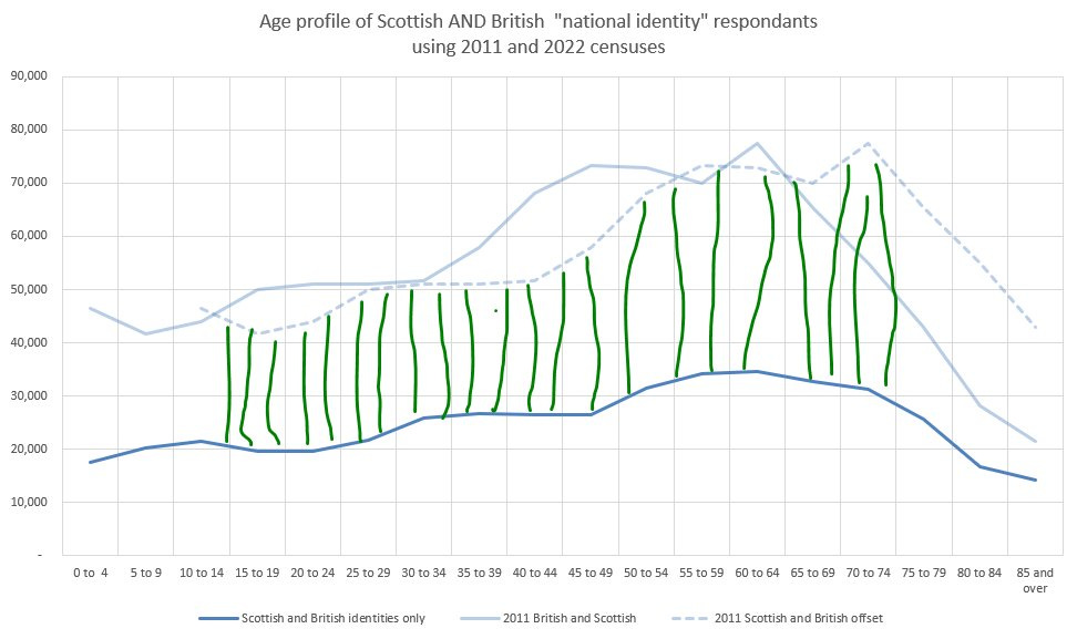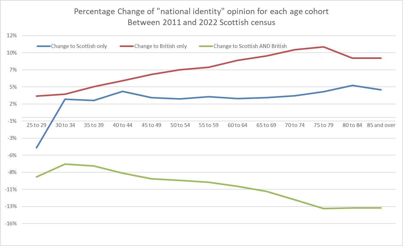 “Polarised” that’s the word, the 2011 Scottish AND British people have polarised their views in 2022 with older people being more likely to go British.
