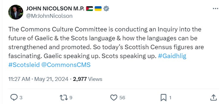 Conversely, the Scottish Parliament has their Scottish Languages Bill going through, and as an Englishman in England, I daren’t concern myself with the process.